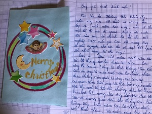 My name is God Thi Bi. Another Christmas season is here and I'll see you soon. I am very happy and joyful even if it is only a small joy but contains a lot of love. This Christmas I would like to have a watch to check what time I go to school. I wish you a very happy and healthy Christmas, always with the Child Jesus accompanying you. The New Year is also coming, I wish you a Happy New Year for your family. Finally, thank you for reading my letter.